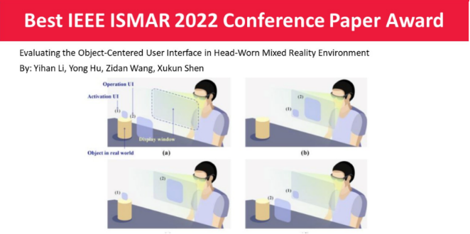 20221017日至21日,混合现实与增强现实领域的顶级国际学术会议IEEE ISMAR 2022The 21st IEEE International Symposium on Mixed and Augmented Reality在新加坡线上线下同时举行。北航新媒体艺术与设计学院2020级硕士生李一含第一作者)、王子丹沈旭昆教授与胡勇教授共同指导下完成的论文Evaluating the Object-Centered User Interface in Head-Worn Mixed Reality Environment被选为本届最佳会议论文奖。
