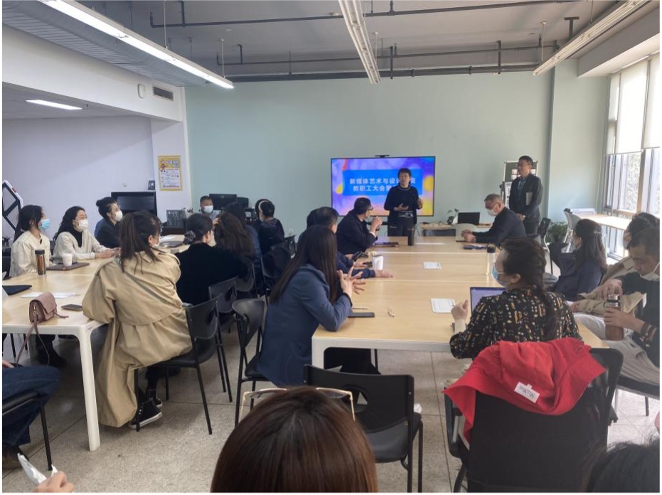 2022413日,新媒体艺术与设计学院在新主楼B332会议室,召开全院教职工大会,共同学习国家安全相关知识。