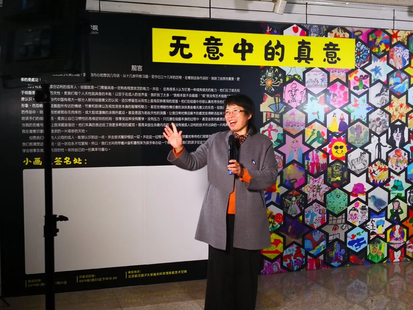 开幕式在小画家们童声童趣的主持中拉开序幕。新媒体艺术与设计学院党总支书记王群及多位教师,北航附小和幼儿园的教师代表,以及小朋友、家长等近百人出席开幕式。王群书记及本次画展策展人李佳老师分别致辞。