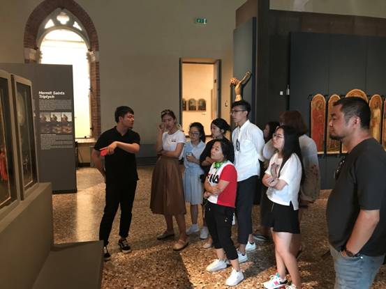 在威尼斯艺术学院的交流访问中,Sileno教授带着大家参观了各专业的学生画室、工作室,并在学院的历史档案室为大家展示学院收藏的学生、校友大师等珍贵作品,并与大家一起来到威尼斯艺术学院美术馆为大家讲解包括乔尔乔内的《暴风雨》等多幅大师作品,使同学们近距离接触大师作品,欣赏文艺复兴带来的珍贵文献。
