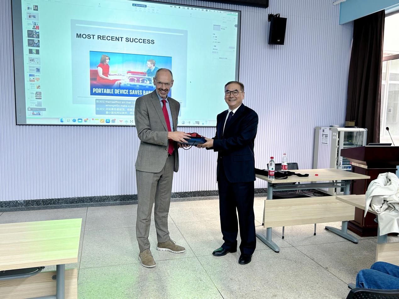 新媒体艺术与设计学院院长沈旭昆代表学院向Cees deBont教授赠送了北航特色的纪念品,并再次表达了热烈的欢迎与诚挚的感谢。