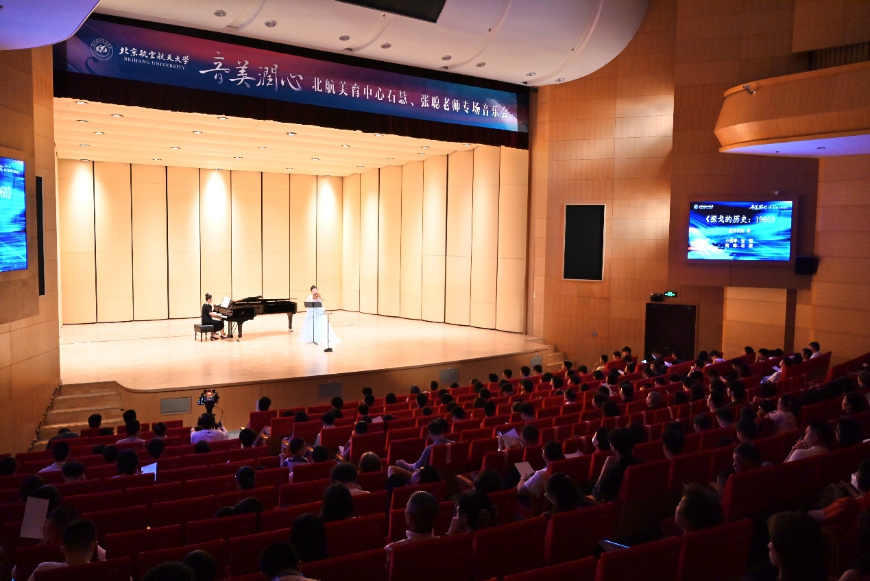 为深入学习宣传贯彻党的二十大精神,进一步加强学校美育工作,强化学校美育育人功能,全面实施学校美育浸润行动,展现美育中心师资风采,丰富师生校园文化生活,由美育中心主办、共青团北京欧美大片ppt免费大全委员会协办的“‘音’美润心北航美育中心石慧、张聪老师专场音乐会”于5月18日晚在晨兴音乐厅举办。校党委宣传部、教师发展中心、离退休工作处、新媒体艺术与设计学院、美育中心等相关部门负责人出席了本场音乐会。