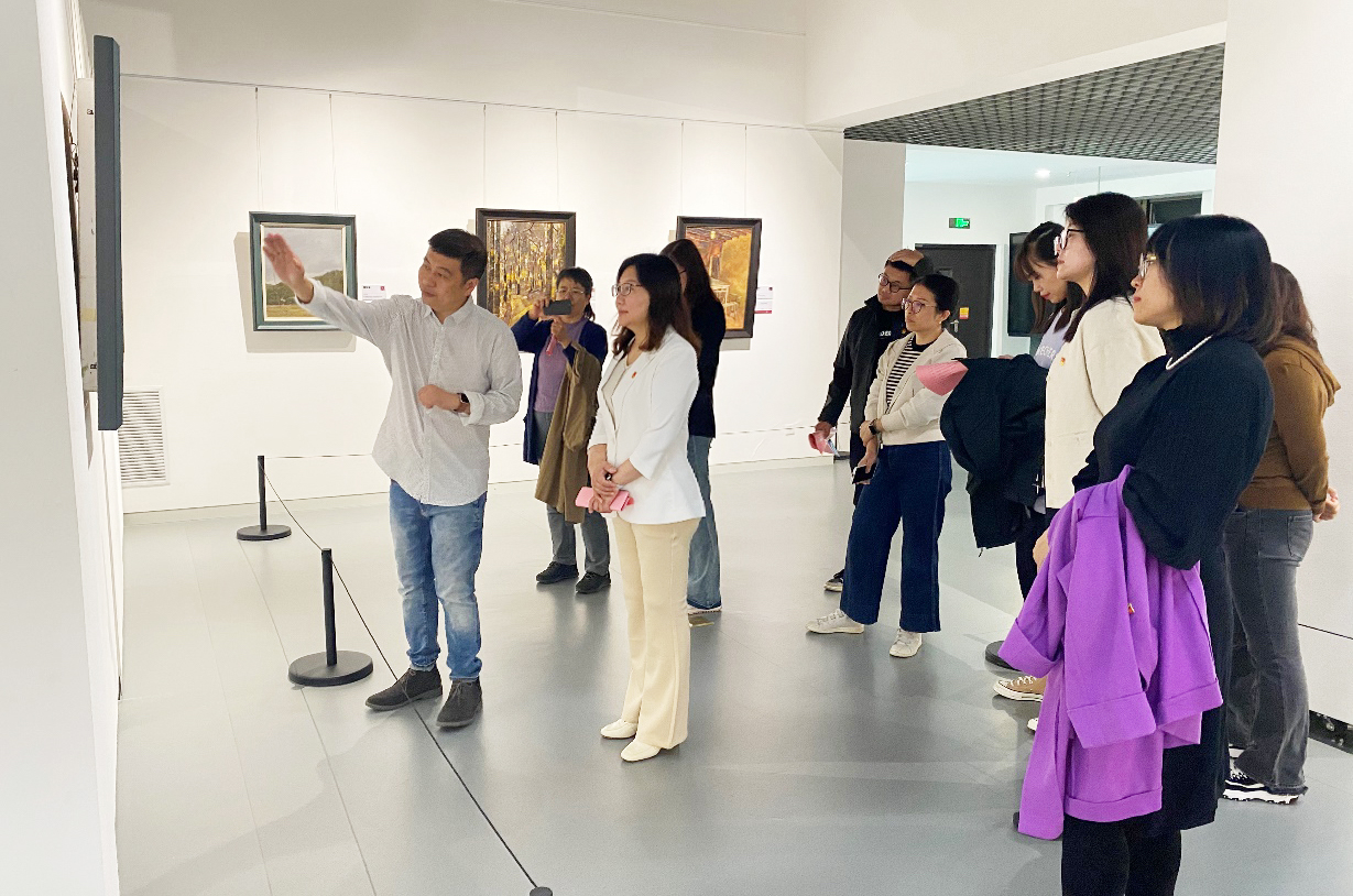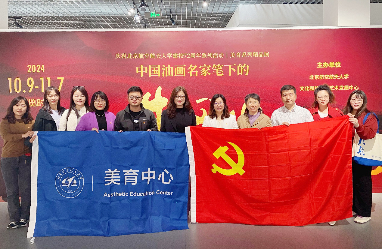为深入学习贯彻全国教育大会精神及井冈山精神,10月14日,北航副校长邓怡、新媒体艺术与设计学院负责人及美育中心党员教师参观在北航艺术馆(逸夫科学馆五层)展出的美育系列精品展——中国油画名家笔下的井冈山。