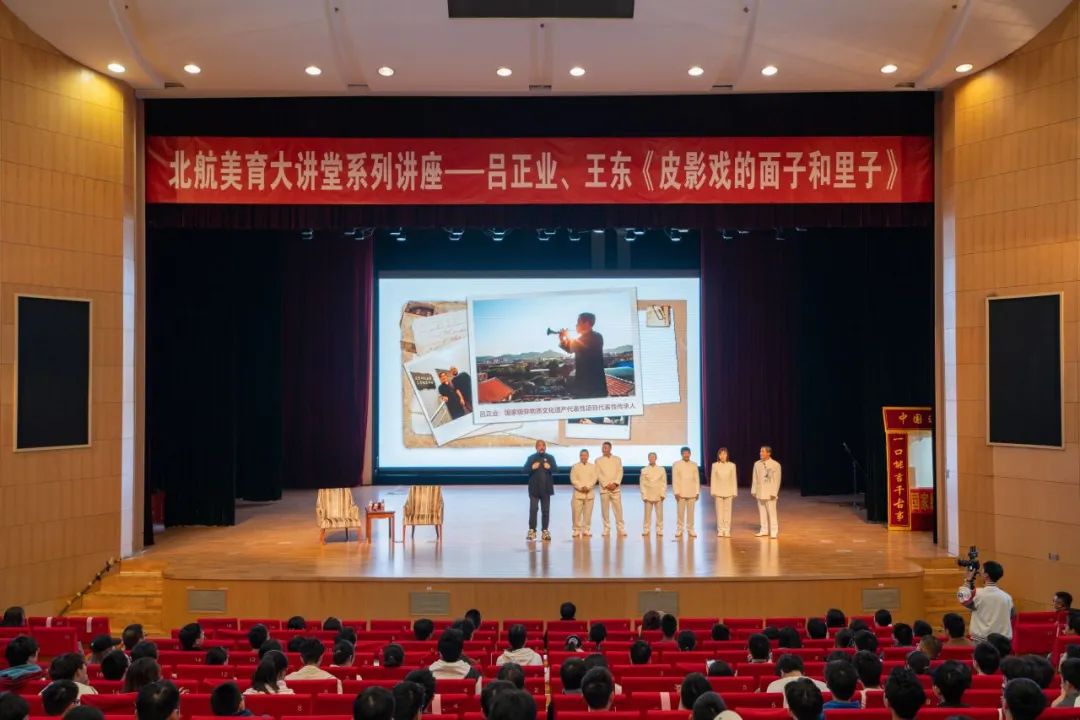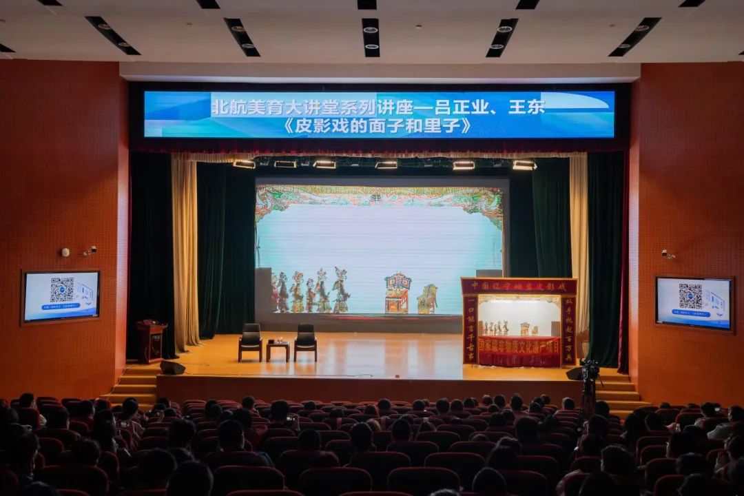 10月16日下午、10月17日晚上,北航美育中心特邀国家级非物质文化遗产代表性项目代表性传承人吕正业,辽宁科技大学建筑与艺术设计学院美育教育中心主任兼艺术馆馆长、岫岩皮影戏第六代传承人王东分别在学院路校区晨兴音乐厅和沙河校区咏曼剧场,为北航师生讲述“皮影戏的面子和里子”美育主题报告。讲座由美育中心副主任宋泽惠主持。