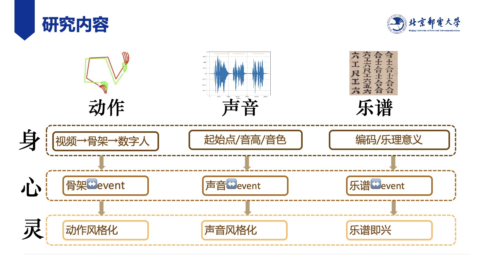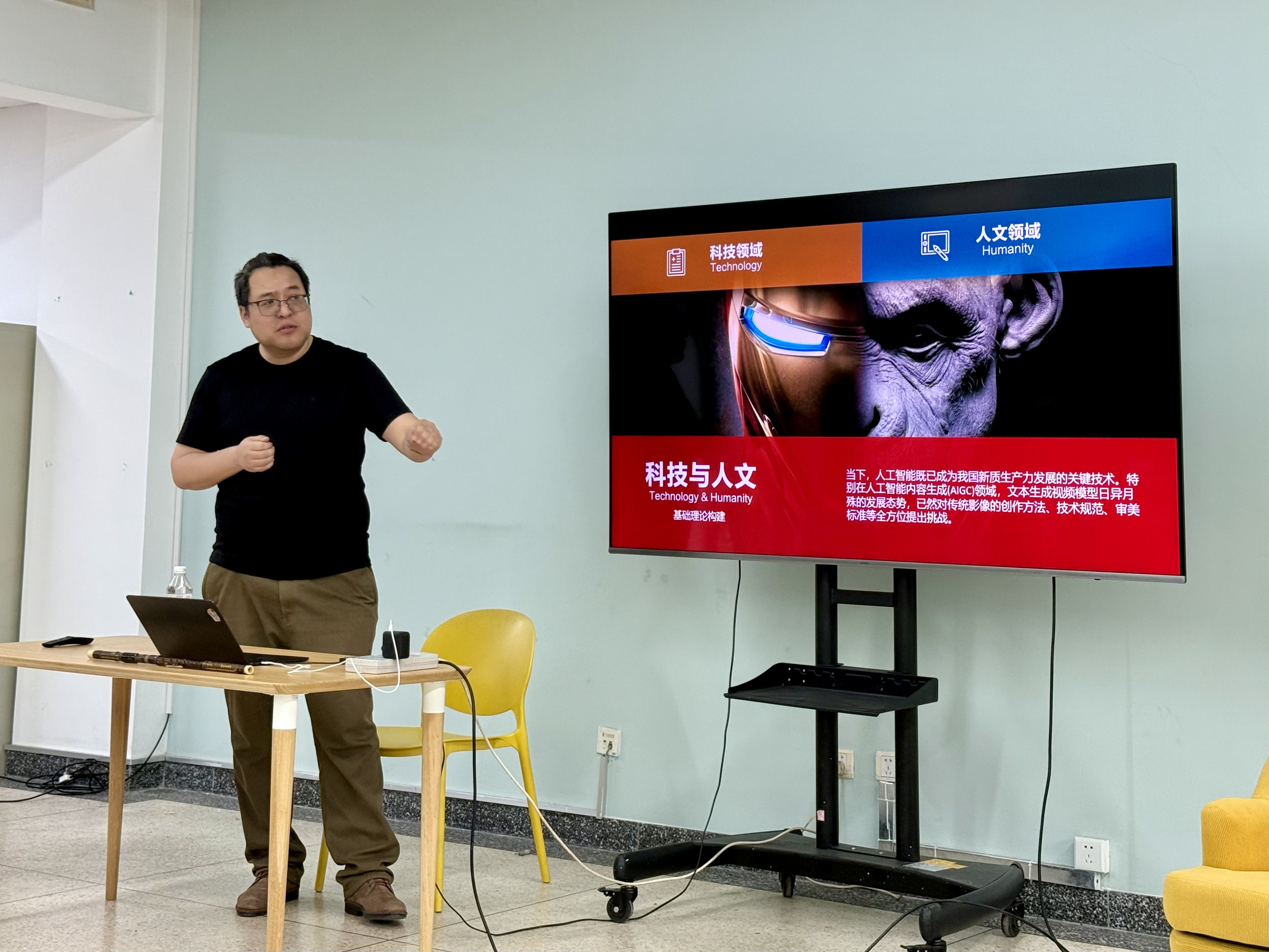 三位嘉宾围绕主题展开深度分享。中国传媒大学的图拉副教授探讨了电影语言与人工智能生成内容之间的交互关系及其对影像叙事的影响。目前,以Sora、Runway Gen 3为代表的主流文生视频模型,虽颠覆传统创作,但仍需解决数据质量、符号系统解码等核心问题。图拉老师提出三个关键路径,以推动AIGC在影视领域的专业化应用,分别是:基于电影语言的数据标注规范与美学评估方法、构建高质量影视数据集与影视领域特化模型训练,以及系统化的影视领域提示词工程与智能体建设。北京邮电大学李荣锋副教授探讨如何通过人工智能技术解析琵琶等民族音乐的腔韵。研究团队构建了多模态表演域谱数据集,结合工尺谱骨干音分析与机器视觉技术,实现自动扒谱与风格化生成。通过改造琵琶品柱、指甲等装置,记录演奏动作与声音的关联,为人工智能在传统音乐传承与创新中的应用提供了新路径,助力挖掘中华音乐的文化基因。北航新媒体学院副教授王硕融合信息科学与人文艺术的双重视角,分析人工智能生成图像、新技术图像机器视觉图像其信息创生的机制。并结合神经科学模型与算法特征,探讨机器通过内生调节机制模拟人类情感的可能性。目前,人机交互的情感感知正在重构传统认知边界,研究回应了数字时代艺术本体的追问,也为智能生成艺术的价值判断提供了跨学科方法论。