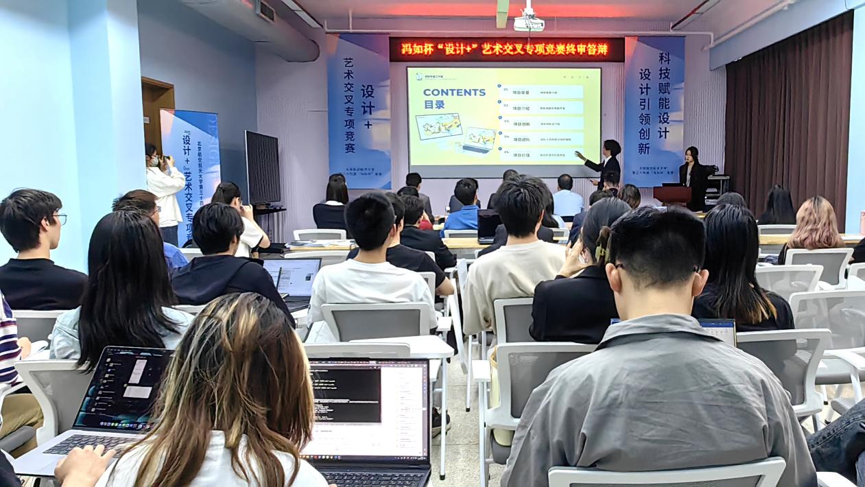 为鼓励和培养学生的跨学科设计创意、数字化艺术创作和团队协作创新三方面的综合能力,促进学科交叉,2024年北京欧美大片ppt免费大全第三十四届“冯如杯”竞赛特增设“设计+”艺术交叉专项竞赛。5月11日下午,“设计+”专项竞赛终审答辩在新主楼B324举行。经过前期校内外专家共同评审,11项交叉融合项目脱颖而出,成功入围。