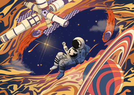 北航,作为高等教育领域的翘楚和科技创新的佼佼者,坚定地秉承着空天报国的崇高志向。敢于不断创新和突破,积极探索建设中国特色、世界一流大学的崭新道路,为国家的强大建设贡献着自己的力量。北航“空天报国”精神,作为北航人的骄傲和中国航空航天事业的推动力量,源远流长。它代表着北航人勇攀高峰、不畏艰险的品质,这种精神不仅激励着北航学子在学术上追求卓越,更传承着“报效祖国”的崇高使命感。北航人怀揣着对祖国的深情厚爱,义无反顾地投身于航空航天领域,为中国的繁荣和强大默默奉献。这种精神不仅是家国情怀的象征,更是一种无畏困难、坚韧不拔的责任担当。在北航,莘莘学子不负时代重托,不负青春韶华,以“爱国奉献、敢为人先、团结拼搏、担当实干”的“空天报国”精神,承载着北航人的使命与荣誉,在青春的赛道上努力奔跑,谱写着新时代航空航天人的华彩乐章,为中国航空航天事业的腾飞提供着强大动力。因此,新媒体艺术与设计学院研究生2022级党支部,以实际行动学习北航“空天报国”精神。通过理论结合实践的方式,让学生党员及入党积极分子学习其精神领悟其内涵,并利用专业优势,将理论知识通过画笔的形式转为实践产出。