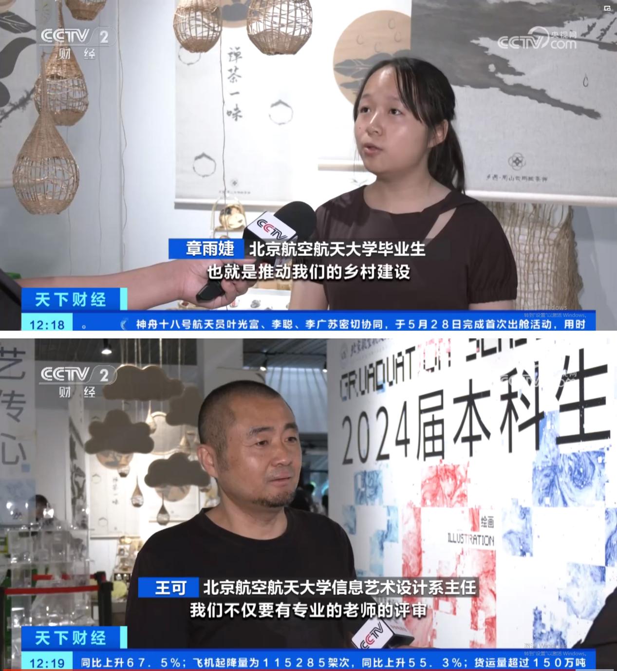 5月24日至31日,北航新媒体艺术与设计学院2024届本科生毕业展在北航艺术馆展出。展览包含绘韵雅集、信艺传心、影动新境、数艺创界四个主题,聚焦传统与现代的传承与创新、艺术与科学的交叉与融合,进行全方位的设计实践和艺术展现。其中王可教授指导章雨婕同学的毕业课题“艺术乡建文创产品在地性设计研究”引发关注,中央电视台财经频道进行面对面采访,并于“财经天下”栏目播出。该课题顺应乡村振兴和艺术乡建等国家重大发展战略的时代需求,以四川雅安茶马古道文创产品为例进行“在地性”研究,旨在通过设计创新等社会实践活动激活沉睡的乡土文化,探索艺术介入乡村建设、赋能乡村振兴的有效途径。